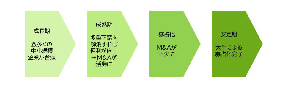 業界成長期に多くのプレイヤーが発生→大手による寡占化→寡占化が完了すれば